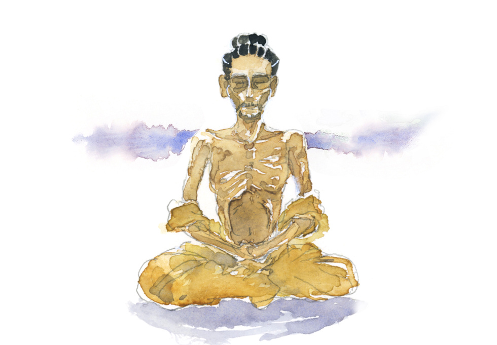 たとえば、自らの息を止めるという苦行や、一日に、一粒の米やゴマしか食べないといった苦行を、長い間続けられました。