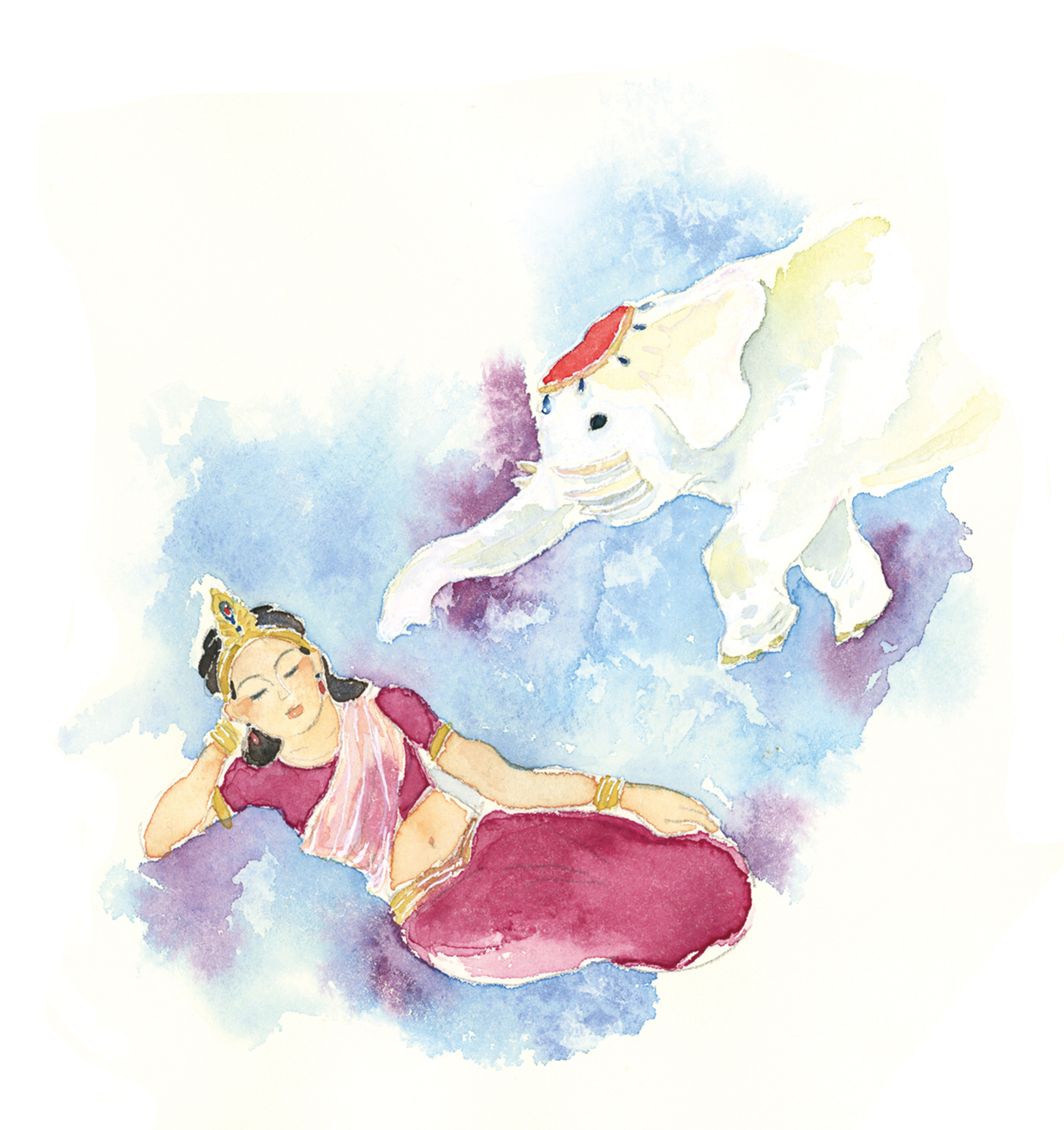 その夢とは、大きな六本の牙を持つ一頭の白象が、自分のお腹の中に入ってくるというものでした。