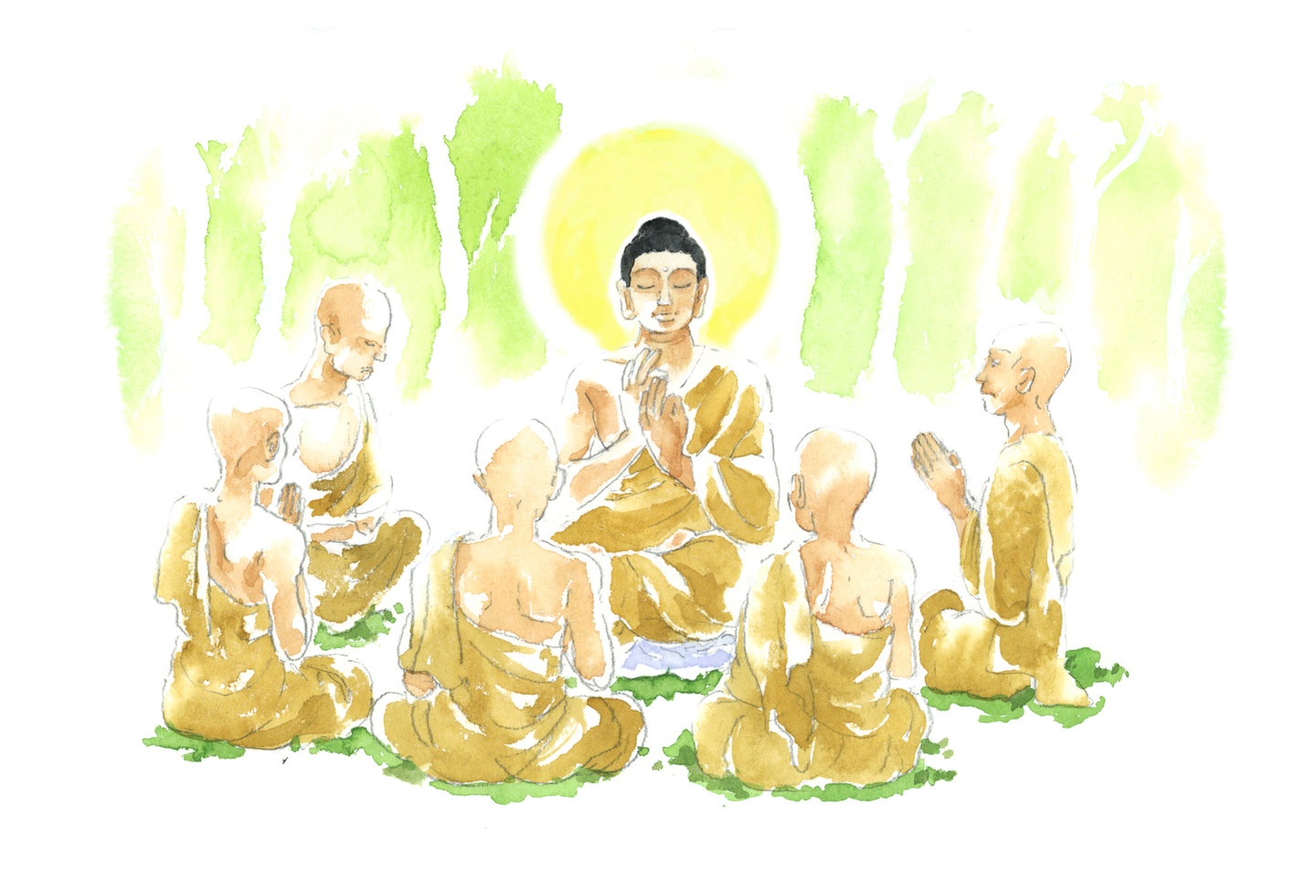 このように、四諦は、病気を治す手順に喩えられ、仏教においても、私たちの生活においても、とても大切な教えであり、この教えを聞いた五人の比丘は、次第に心を開いていきました。
