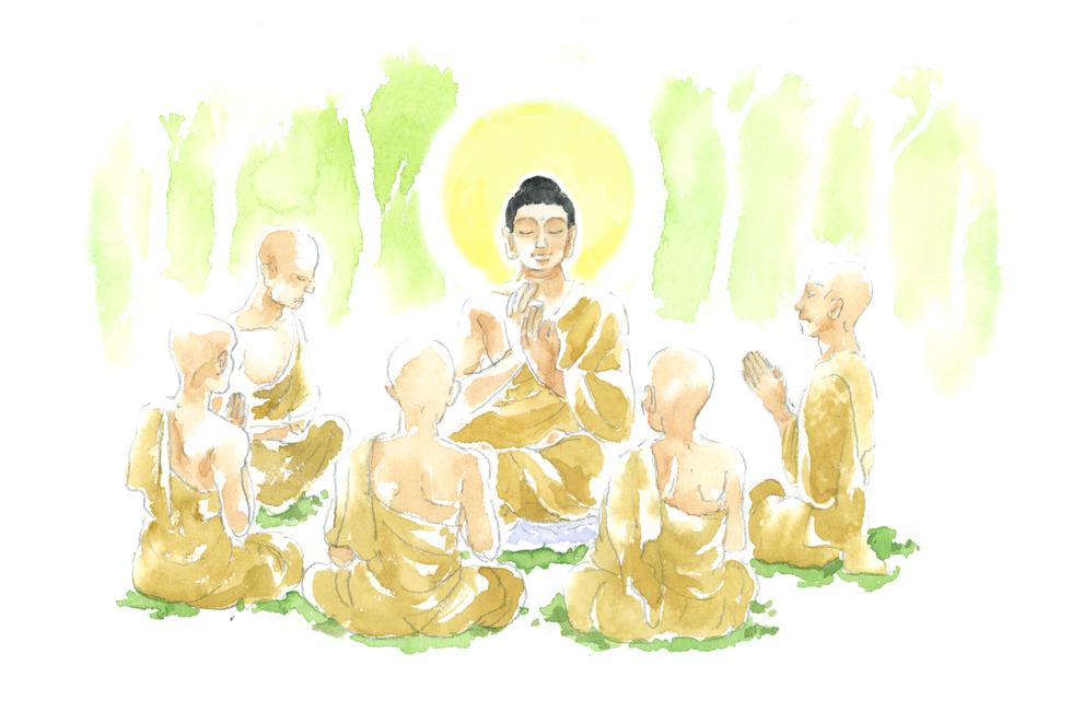 お釈迦さまが、悟りの内容を次々に説かれていくと、五人の比丘たちは、悟りの境地に達したのでした。