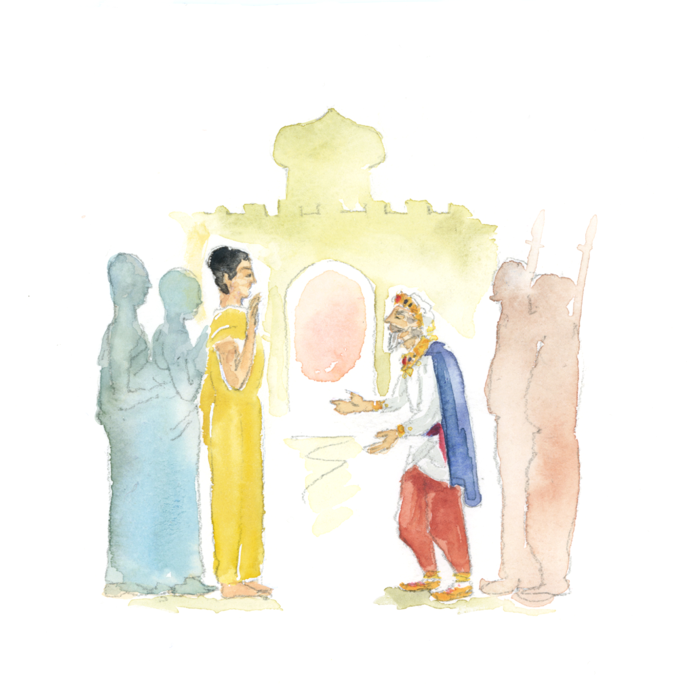 お釈迦さまの父である浄飯王は、我が子に一目なりとも会い、その教えを聞かせて頂きたいと思って、使いを出しました。